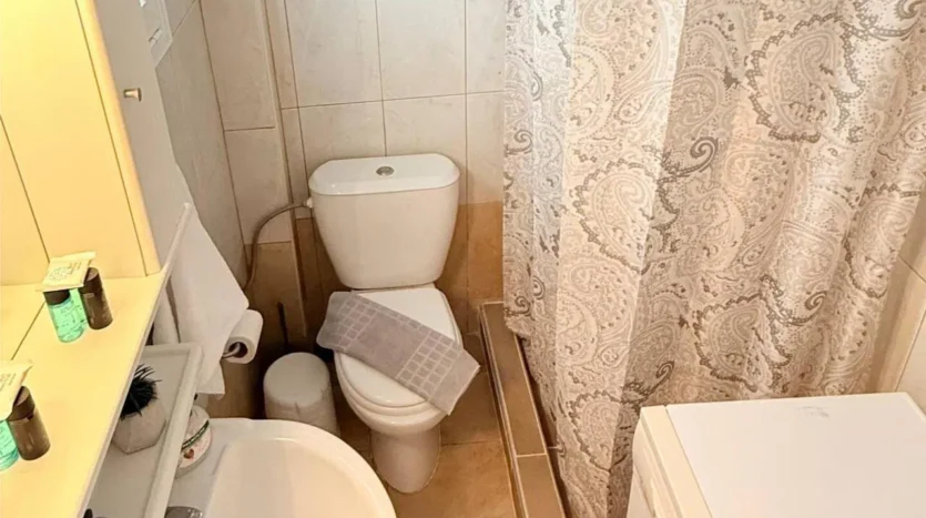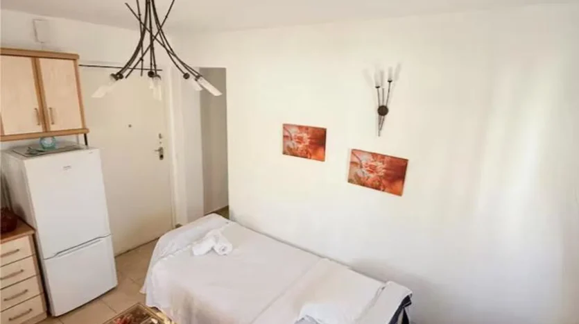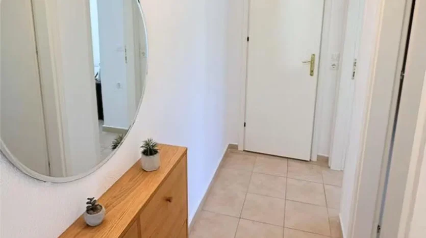 The apartment has two bedrooms – one with a double bed and the other with two single beds. In the living room, there are two sofa beds.