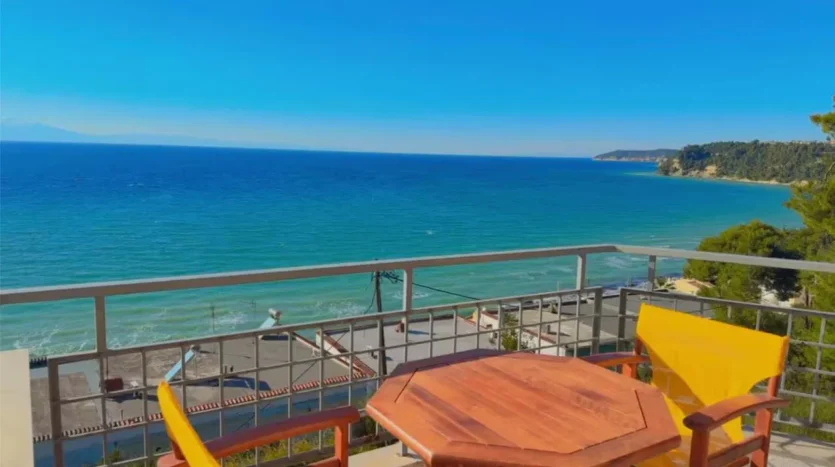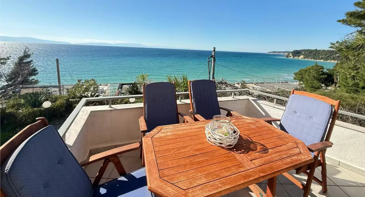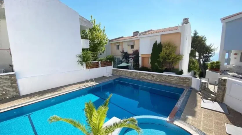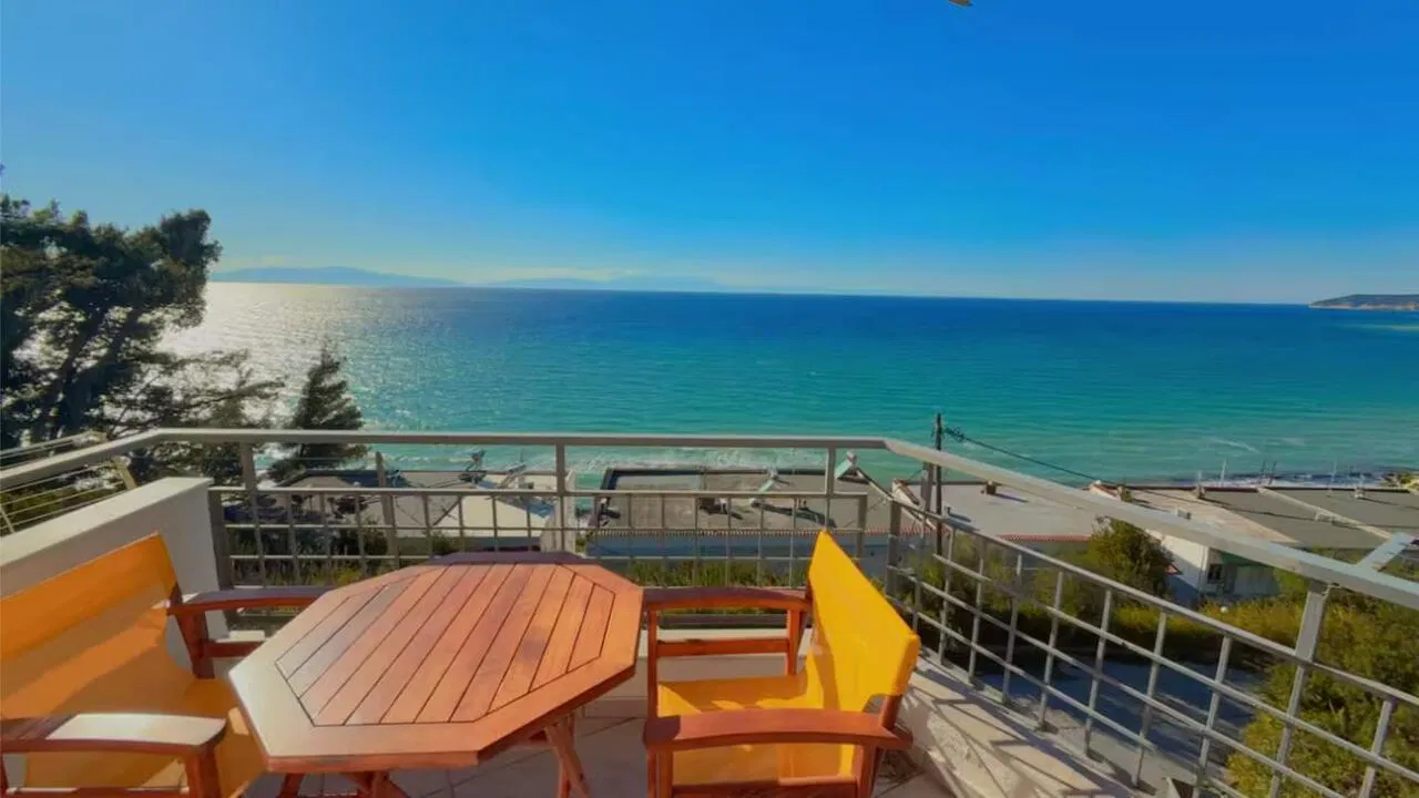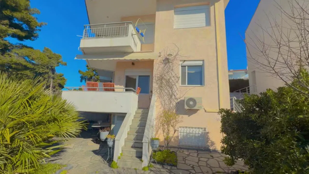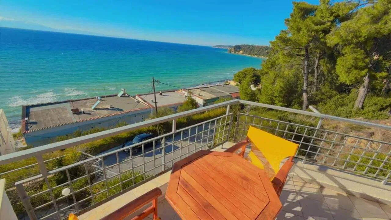 Siviri Sea View Villa is located 130 meters from the beach in Siviri, on the Kassandra peninsula. The villa offers accommodation for up to 8 guests with a panoramic view of the Aegean Sea. It is part of a complex with a shared swimming pool and a children’s playground.